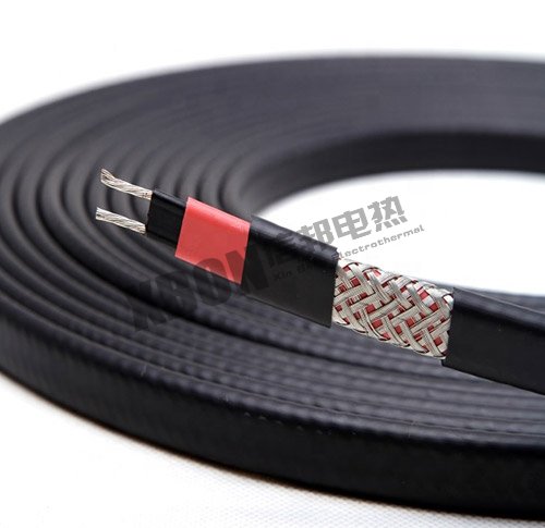 自限溫電伴熱帶又稱自控溫電伴熱帶,它是新一代唯一帶狀恒溫電熱產品,由高分子導電碳粒和兩根平行母線外加絕緣層構成,其PTC發熱元件的電阻率具有很高的正溫度系數且相互并聯。